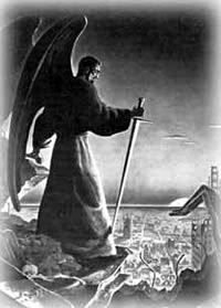 Hur som helst så innebär detta att det "berg" eller den höjd dit djävulen förde Jesus, inte nödvändigtvis behöver ha varit ett berg av sten. Det finns för övrigt inga så höga berg att man därifrån kan se alla riken i världen. Och om det bara var en syn, dvs en bildframställning, så hade det inte behövts någon höjd alls. Så vad var det för en höjd då? Ja, det kan ju ha varit på en viss "höjd" över jorden, dvs uppe i atmosfären, ombord på ett änglaskepp. Med tanke på alla övriga bibelställen där det talas om änglar och deras himlavagnar, är ju detta det troligaste. För även om det (såvitt jag vet) inte sägs någonstans i Skriften att de fallna änglarna har sådana vagnar, så kan man ju anta att de tog dem med sig i sitt fall om de var utrustade med sådana före fallet. Och djävulen är ju fursten över både luftens härsmakt och ondskans andemakter i himlarymderna (troligen två olika häravdelningar), så det borde väl avgöra saken. Om Guds trogna änglar behöver farkoster för att ta sig fram däruppe, så skulle väl fiendens änglar behöva det ännu mer.