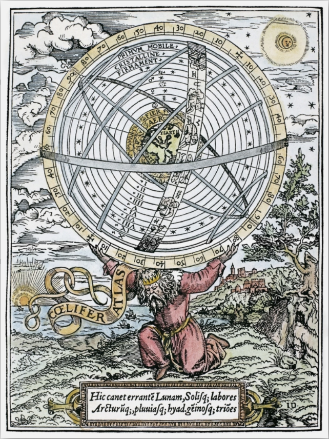 också, vid den tiden, om himlarna, dvs vår kosmiska