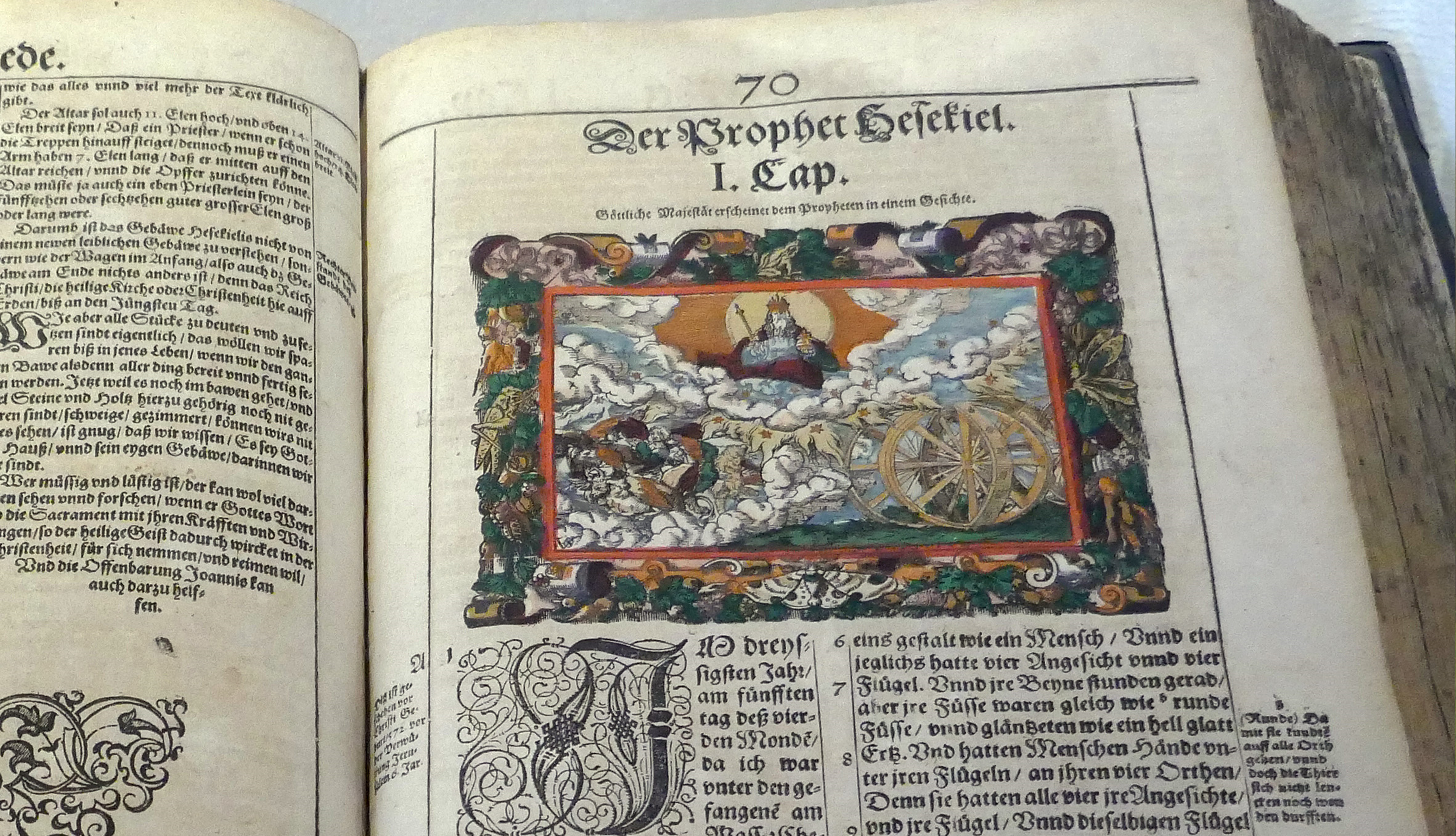 Så i första versen är det dekorationerna i helgedomen som ger ifrån sig psalmer. Är dekorationerna således änglar? I andra versen är det först vagnarna som tillsammans ger pris - är vagnarna OCKSÅ änglar? - och sedan deras keruber och deras ophanim, deras flygande hjul. Är alla dessa alltså änglar? Eller är det bara så att keruberna, som handhar lovsången, använder olika redskap, som också ger ljud ifrån sig, tillsammans med sången? Vad tror du?