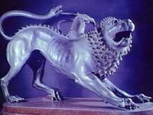 Den grekiska chimeran var en blandning av get, lejon och orm. Alltså ett lejon med ett gethuvud och ormsvans. Enligt Upp. 9:17-19 skall det i den sista tiden finnas en armé som rider på en annan slags chimera - hästar med lejonhuvuden och ormsvansar. Nu behöver ju inte detta vara fysiska varelser, eftersom de tycks komma upp ur avgrunden, men likheten med chimeran är tydlig, och det är märkligt att forskningen gett sina egna miniatyrmonster just det namnet. Och som sagt, så är sådana varelser som hästar med lejonhuvuden och ormsvansar fullt möjliga att "framställa", rent fysiskt, med den teknik forskningen redan nu besitter. Det skulle krävas många försök, många experiment, varunder andra märkliga hybrider uppkommer, på vägen, men principen är densamma som med vaktel/kycklingen och de andra mengeleexperimenten.