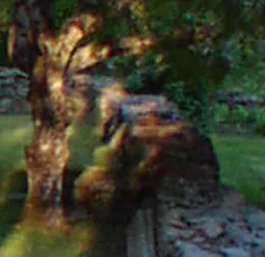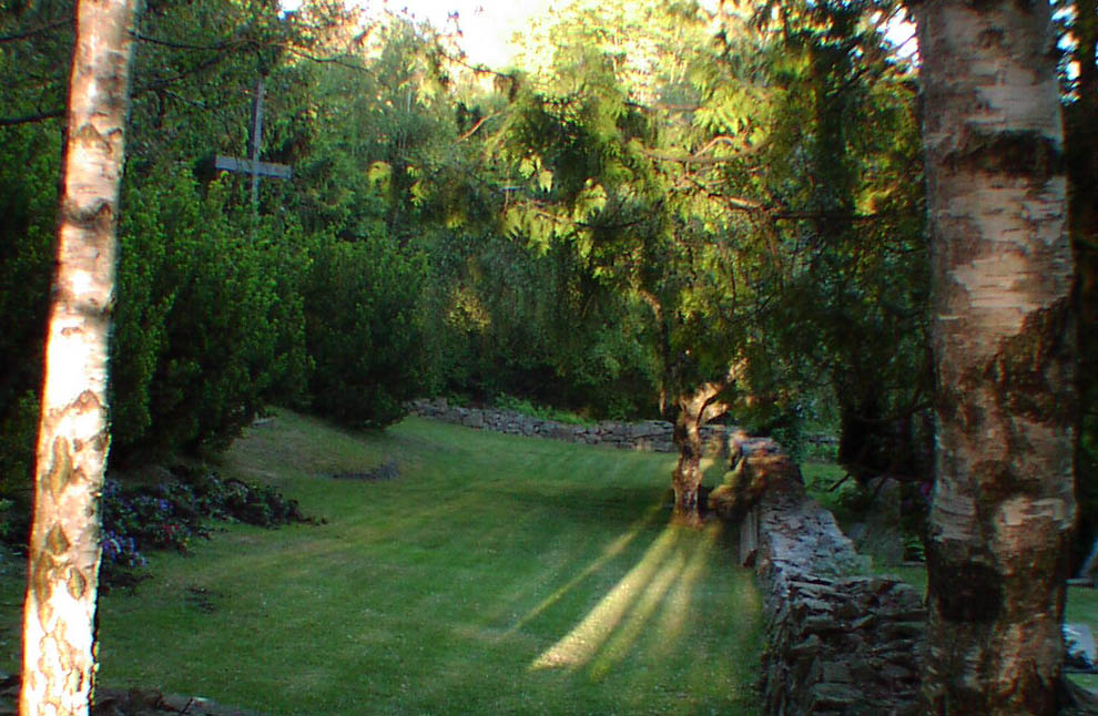 När jag sedan kom hem och laddade in bilderna i datorn och tittade igenom dem, så förstorade jag upp de där två "misslyckade" bilderna, och fick se något som fick mig att rysa i hela kroppen. Jag ryser nu när jag skriver detta. Det ser ut som om det sitter en gammal man på stenmuren, vänd rakt mot det stora kors som står utanför gården!
